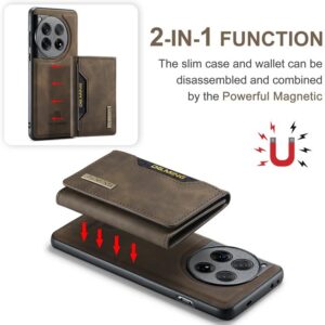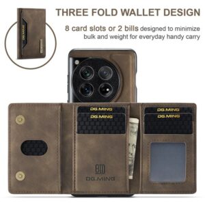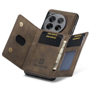 DG.MING M2 Series for OnePlus 12 5G – Kickstand Detachable Magnetic Wallet Case (Coffee)