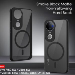 Be the first to review “Hybrid Shockproof Back Cover Case for Vivo V50 / V50e / V50 5G Elite Edition/iQOO Z10R 5G | Hard Back Cover Case (PC & TPU, MagSafe Compatible, Translucent Smoke Matte Back, Black Sides)”