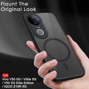 Hybrid Shockproof Back Cover Case for Vivo V50 / V50e / V50 5G Elite Edition/iQOO Z10R 5G | Hard Back Cover Case (PC & TPU, MagSafe Compatible, Translucent Smoke Matte Back, Black Sides)