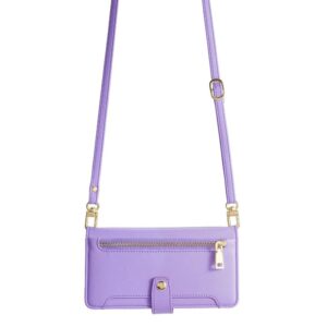 Made from premium PU leather, it features a soft yet durable exterior with a luxurious texture and elegant purple finish. The design is enhanced with fine stitching, ensuring both durability and a refined appearance. Its crossbody style allows you to carry your phone securely and comfortably, making it ideal for shopping, travel, or daily use.