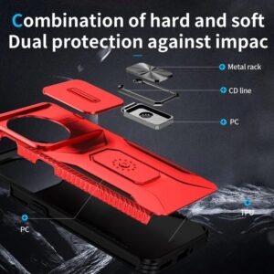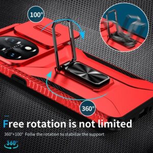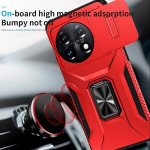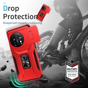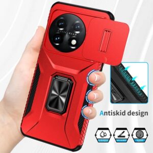 OnePlus 11 5G Case – TPU+PC Ring Kickstand Lens Lid Phone Cover (Red)