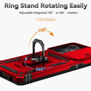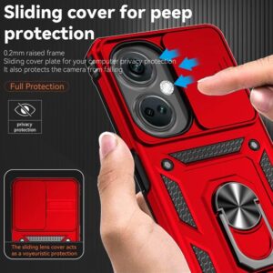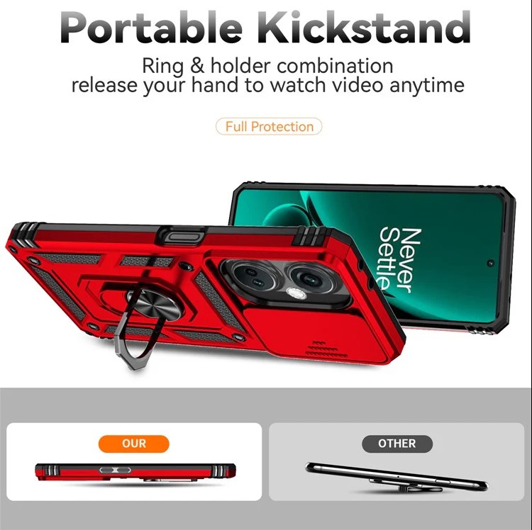 OnePlus Nord CE3 5G Case Ring Kickstand PC+TPU Phone Protector with Slide Camera Cover – Red
