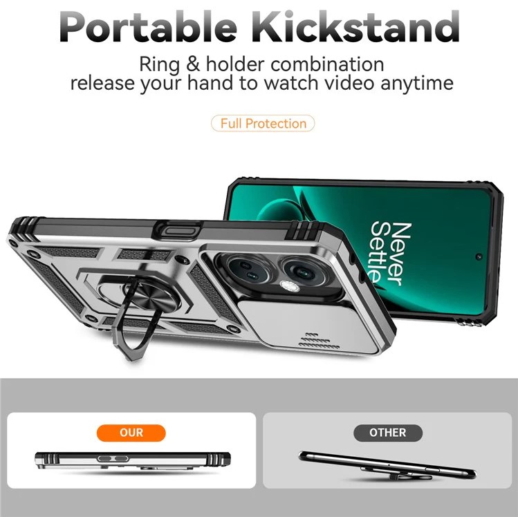 Give your smartphone an elegant shield of strength with the OnePlus Nord CE3 5G Ring Kickstand Case in stunning Silver. Designed for those who demand both protection and premium aesthetics, this hybrid case offers an unbeatable blend of durability, functionality, and style.