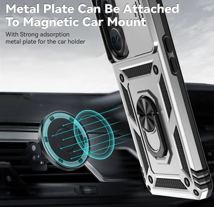 On the back, the 360° rotatable metal ring kickstand adds a touch of convenience and versatility. Whether you’re watching your favorite videos, attending video calls, or playing games, the kickstand lets you enjoy hands-free comfort at any angle. The metal ring also doubles as a magnetic car mount plate, allowing easy attachment to car holders for safe, hands-free driving.
