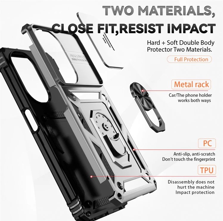 The highlight of this case is its innovative slide camera cover, designed to safeguard your precious camera lens from scratches, dirt, and accidental damage. The smooth sliding mechanism lets you open the lens only when needed, giving you complete privacy and protection in one simple move.