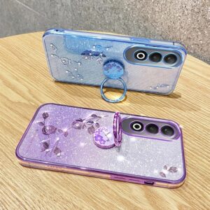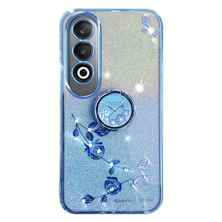 OnePlus Nord CE4 5G Case – Flower Glitter TPU Cover with Ring Kickstand (Blue)
