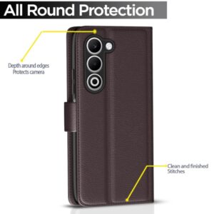 Give your Oppo A5 5G a touch of style and functionality with this Leather Finish Flip Case in an elegant coffee color. Designed with premium leather texture on the outside and soft TPU inside, it provides complete protection against scratches, drops, and bumps. The built-in card pockets allow you to carry essentials like ID and credit cards, while the foldable stand design makes it perfect for watching videos hands-free. With a perfect balance of luxury and durability, this flip case is an all-in-one protection solution for your smartphone.