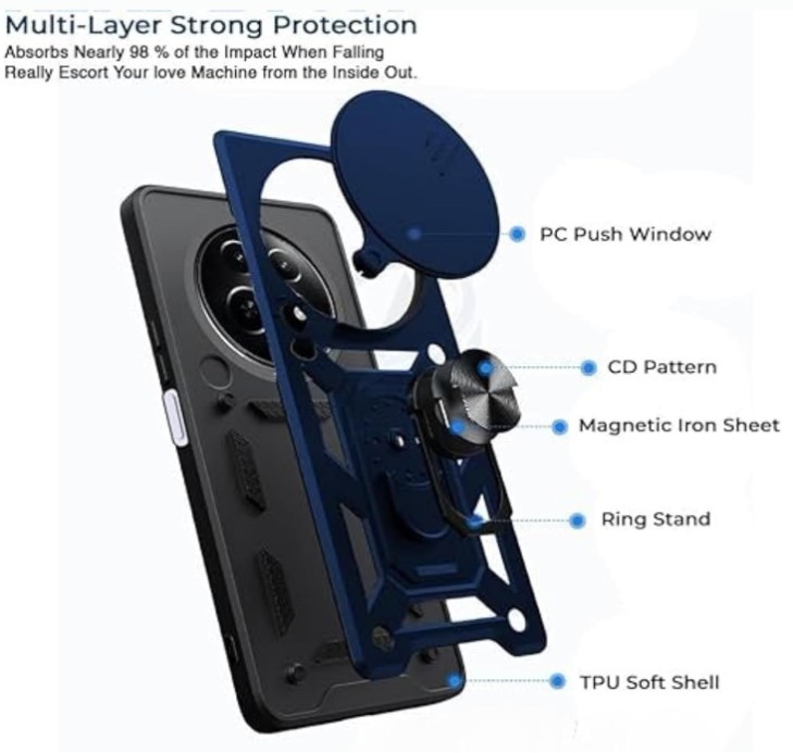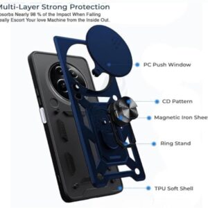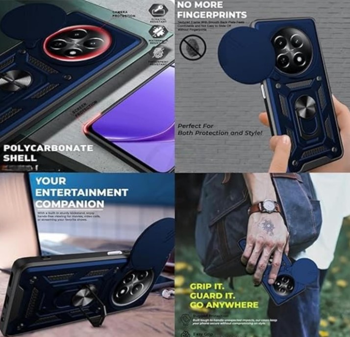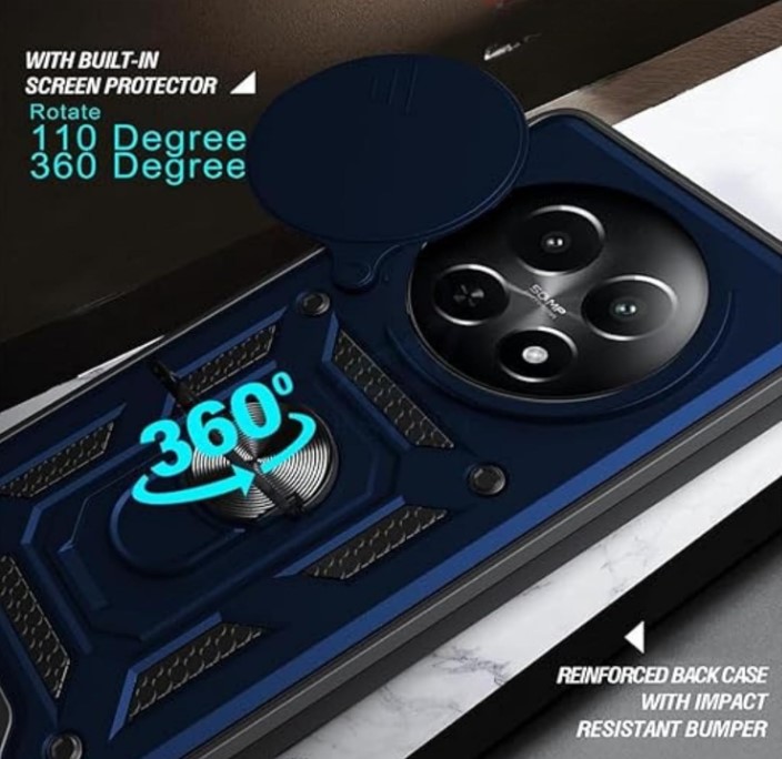 Upgrade your Oppo F29 5G protection with this heavy-duty hybrid case. Engineered for maximum durability, it features a 360-degree rotating finger ring holder for a secure grip and convenient hands-free usage. The innovative slider shutter camera protection keeps your lenses safe from scratches and dust. Designed to absorb shocks and withstand daily wear, this case combines functionality, style, and ultimate protection in one sleek accessory.