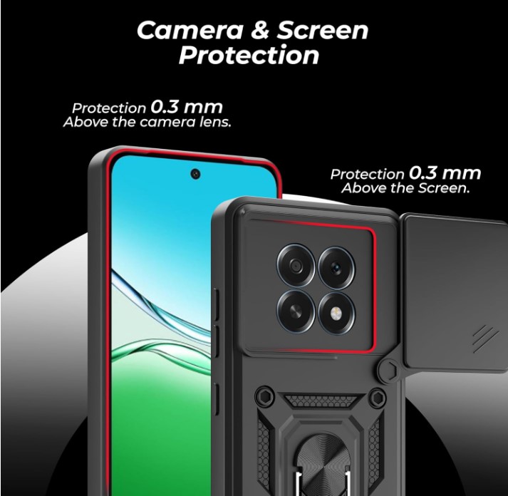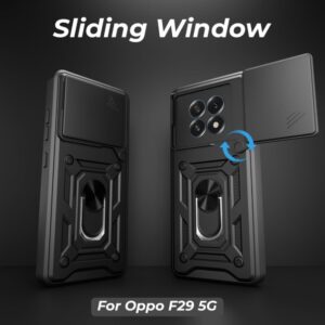 Protect your Oppo F29 5G in style with this premium black back cover. Crafted from durable shockproof TPU material, it offers reliable protection against drops and scratches. The innovative sliding camera cover ensures your lenses remain safe and dust-free, while the built-in stand and stylish ring holder add convenience and functionality. Sleek, modern, and practical, this back cover is the perfect blend of protection and style for your device.