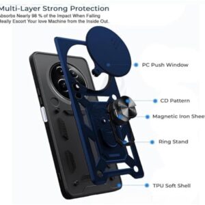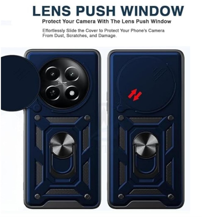 Keep your Oppo F29 Pro 5G safe with this Heavy Duty Hybrid Case in stylish Blue. Built with strong TPU + PC materials, it offers maximum shock absorption and all-round durability. The 360° rotating ring holder provides a secure grip and doubles as a stand for hands-free viewing, while the slider shutter ensures complete camera lens protection from dust and scratches. Perfect for those who want rugged protection with modern functionality.