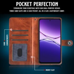 Enhance your Oppo K13x 5G with this Magnetic Flip Case, combining style, protection, and convenience. The premium leather finish in Alder Brown adds a sophisticated touch, while built-in wallet pockets let you carry cards and cash easily. The foldable stand feature makes hands-free viewing effortless, and the magnetic closure keeps your phone secure. Slim yet protective, this case is perfect for professional and everyday use.