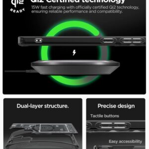 The MagFit magnetic ring ensures seamless compatibility with MagSafe and wireless charging accessories, allowing you to power up or mount your device effortlessly. Its Zero One Black transparent design reveals your phone’s elegant finish while adding a futuristic edge to your device.