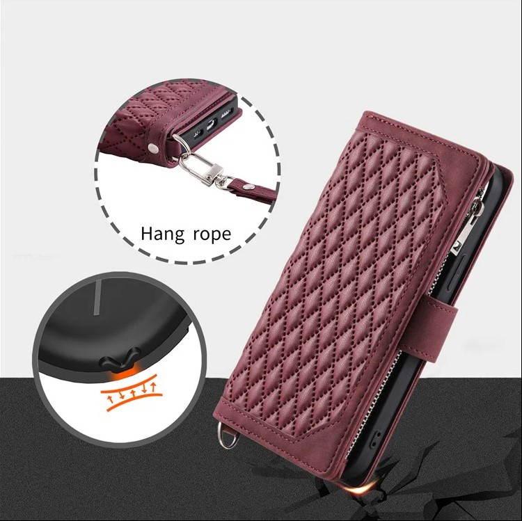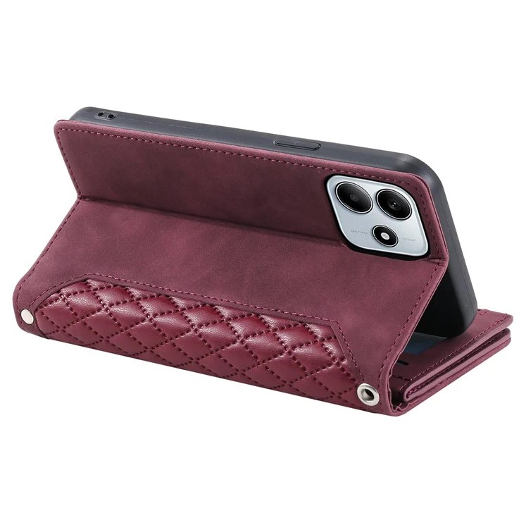 Give your Xiaomi Redmi Note 14 5G a touch of sophistication and luxury with this Rhombus Stitching Line PU Leather Wallet Phone Case (Wine Red). Crafted to perfection, it’s the perfect combination of style, durability, and everyday convenience.